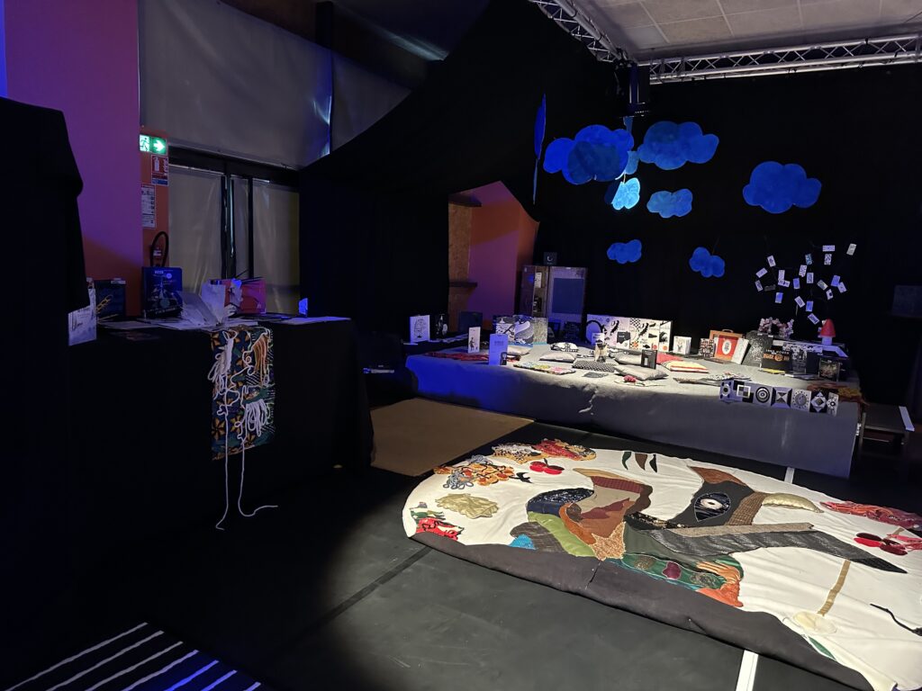 Cette installation sonore se compte d’un espace fermé intime comme une cabane qui contient une toute petite exposition où se mêlent des oeuvres et des poésies. Un espace pour prendre le temps de regarder et d’écouter, avec un casque, une narratrice, vous raconte en direct une histoire, une nouvelle, une poésie, un album, rien que pour vous. Ce dispositif est une immersion dans le monde des mots, des sons et des images… comme un tour de manège. Chaque histoire est accompagnée d’un univers sonore choisi.